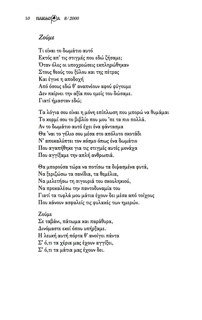 Kennelly Brendan, «Ζούμε», Πανδώρα, τχ. 8 (Νοέμβριος 2000-Μάιος 2001 2001), σ. 10