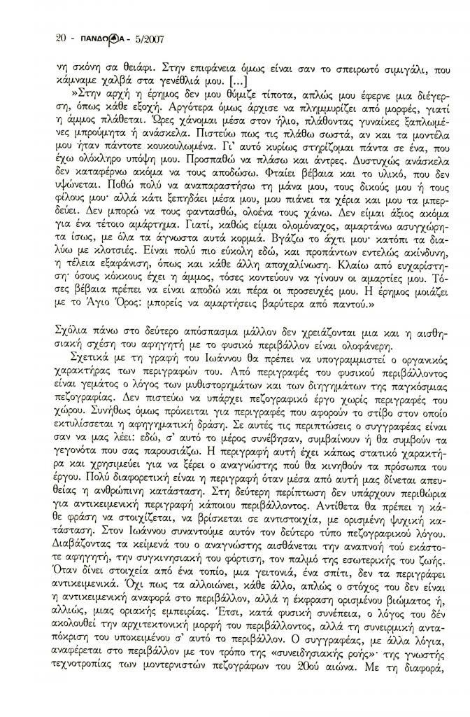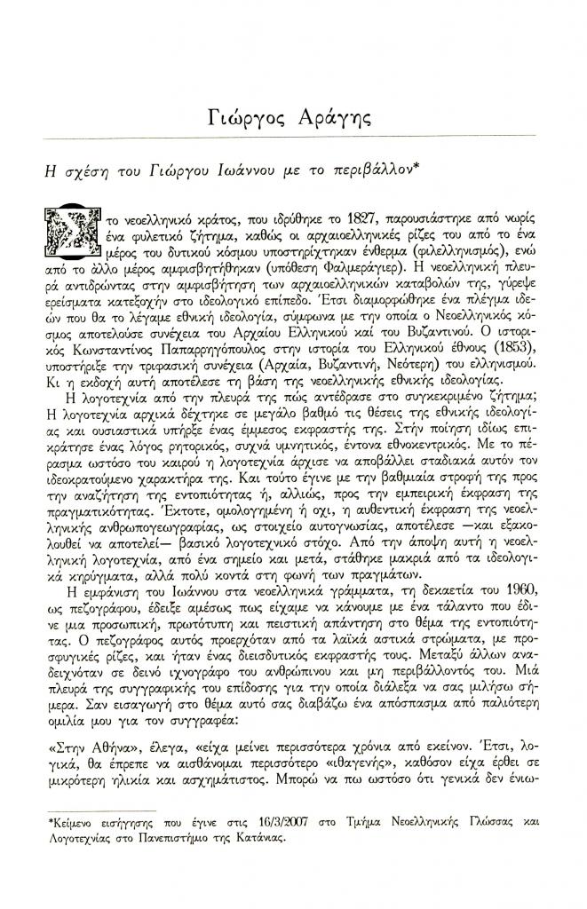 , «Η σχέση του Γιώργου Ιωάννου με το περιβάλλον»,