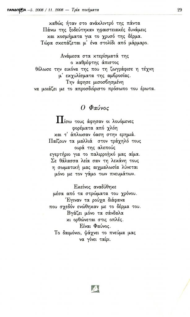 Μοράρης Γιώργος, «Ο τάφος της εταίρας», Πανδώρα, τχ. 22 (Μάιος-Νοέμβριος 2008), σ. 28-29