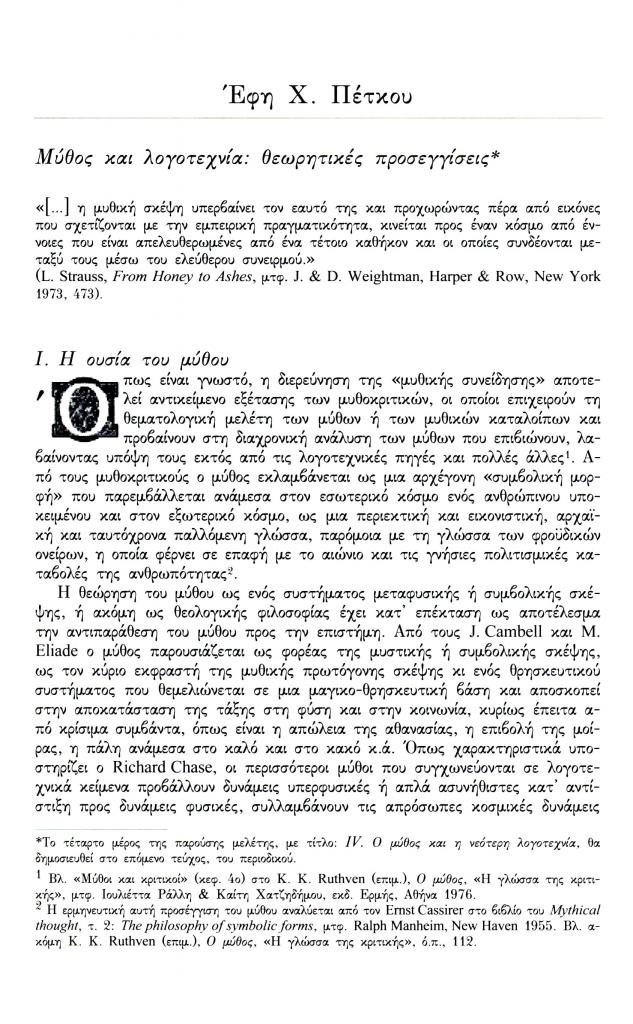 , «Μύθος και λογοτεχνία: θεωρητικές προσεγγίσεις»,