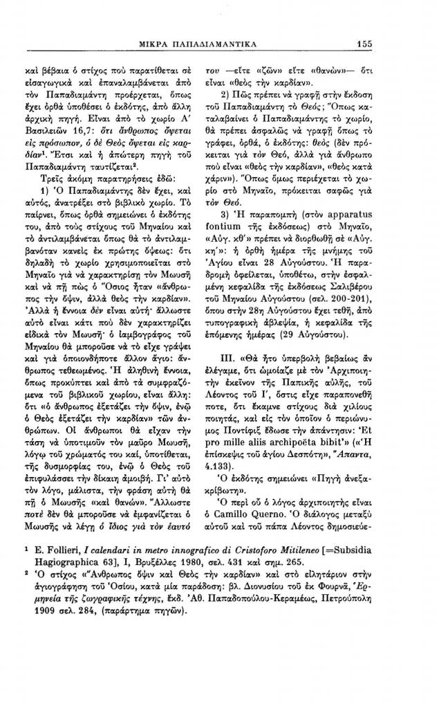 , «Μικρά Παπαδιαμαντικά. Μικρά marginalia στις πηγές του Παπαδιαμάντη», Παπαδιαμαντικά Τετράδια, τχ. 3 (Άνοιξη 1995), σ. 154-162