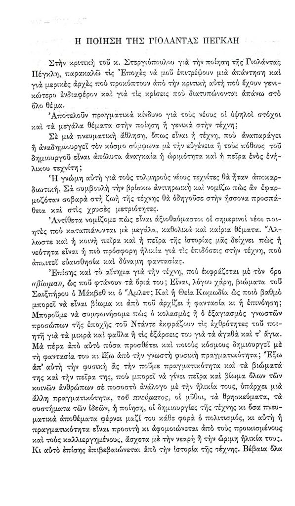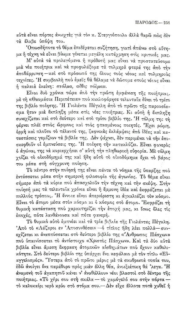 , «Η ποίηση της Γιολάντας Πέγκλη»,