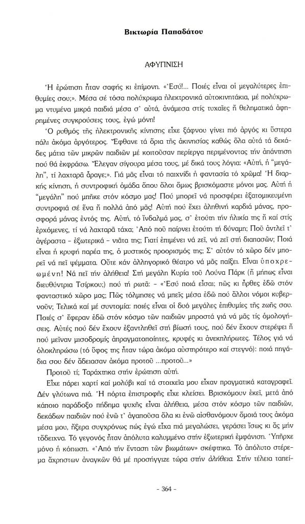 Παπαδάτου Βικτωρία, «Αφύπνιση», Πάροδος, τχ. 5 (Νοέμβριος 2004), σ. 364-366