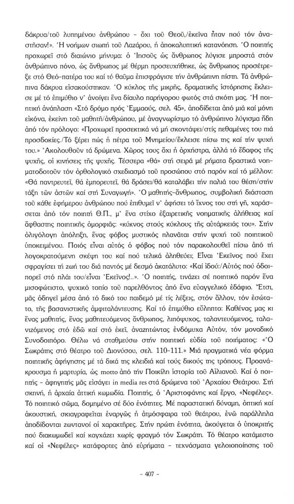 , «Το βιβλίο. Θανάση Παπαθανασόπουλου: Αέναον παρόν, Εκδ. Μελέαγρος, Αθήνα 2004», Πάροδος, τχ. 5 (Νοέμβριος 2004), σ. 404-409