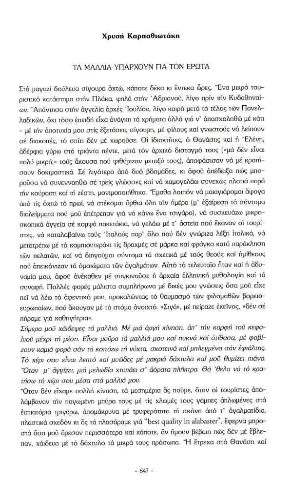 , «Τα μαλλιά υπάρχουν για τον έρωτα»,