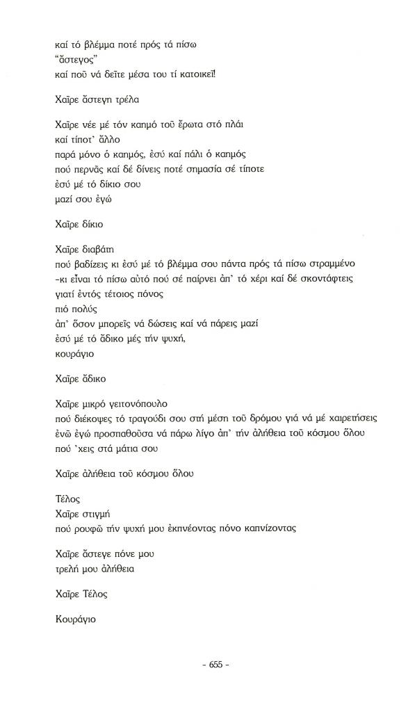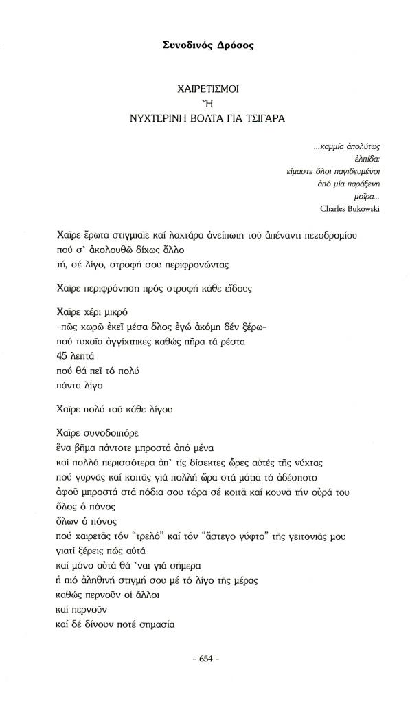 , «Χαιρετισμοί ή νυχτερινή βόλτα για τσιγάρα»,