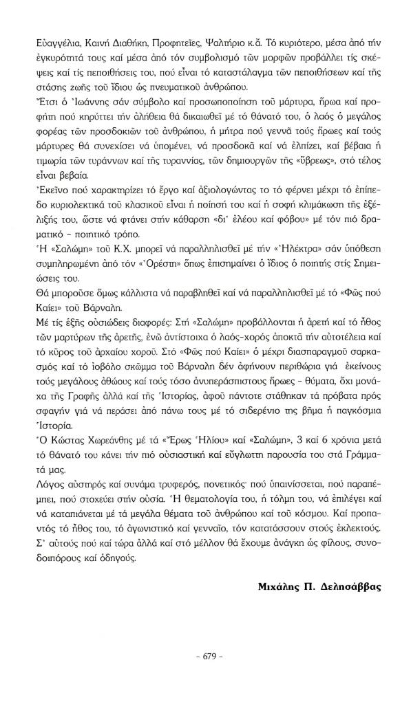 Δελησάββας Μιχάλης Π., «Το βιβλίο. Κώστα Χωρεάνθη: Σαλώμη - Ο Ιωάννης της Ερήμου, Οι Εκδόσεις των Φίλων, Αθήνα 2002», Πάροδος, τχ. 7 (Δεκέμβριος 2005), σ. 678-679