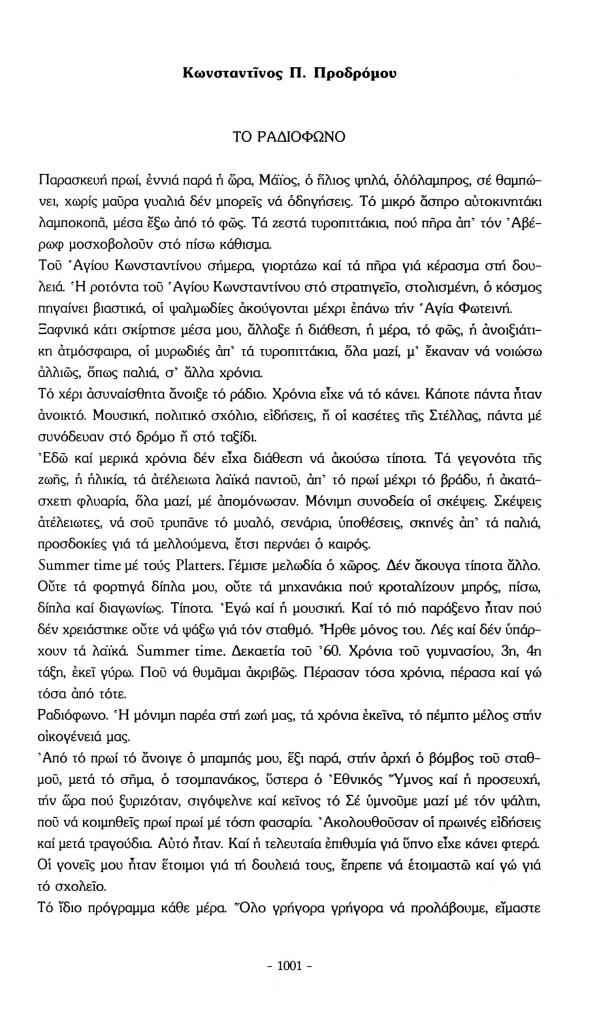 Προδρόμου Κωνσταντίνος Π., «Το ραδιόφωνο», Πάροδος, τχ. 10 (Αύγουστος 2006), σ. 1001-1004