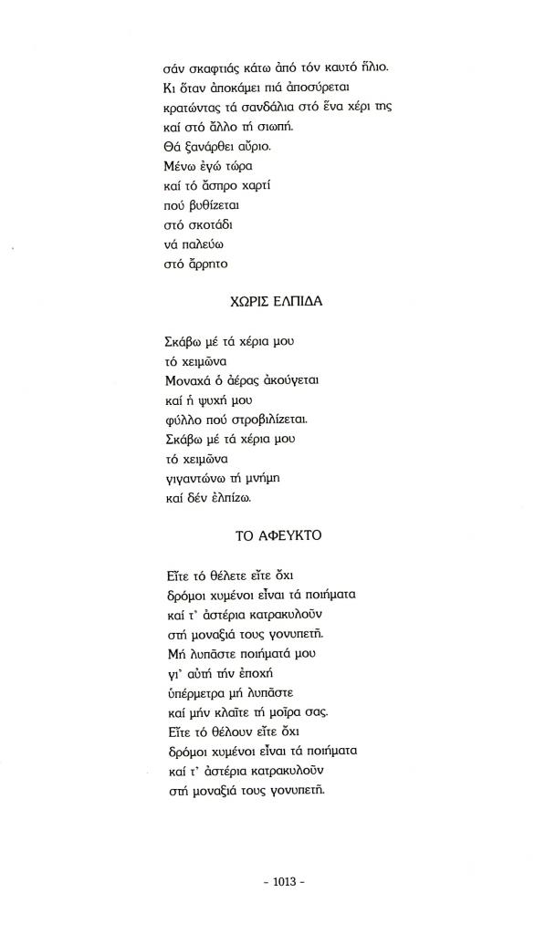 Χατζημωϋσιάδου Νάζη, «Χωρίς ελπίδα», Πάροδος, τχ. 10 (Αύγουστος 2006), σ. 1013