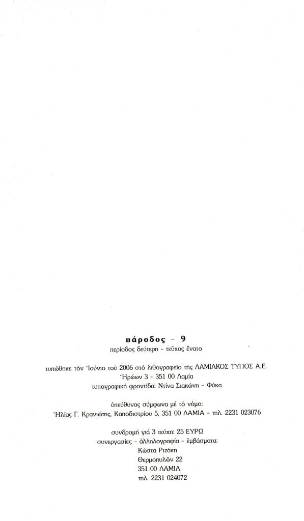 «#», Πάροδος, τχ. 9 (Ιούνιος 2006), σ. (εσώφυλλο)
