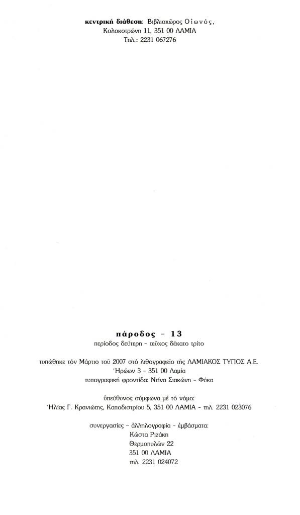 «#», Πάροδος, τχ. 13 (Μάρτιος 2007), σ. (εσώφυλλο)