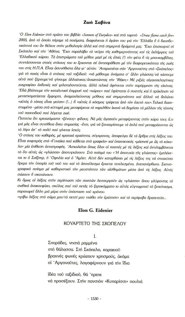 Eidenier Elon G., «Κουαρτέτο της Σκοπέλου», Πάροδος, τχ. 14 (Ιούνιος 2007), σ. 1530-1532