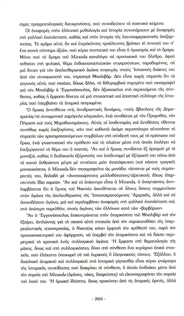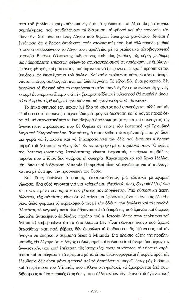 , «Το βιβλίο. Μια ποιητική διάθλαση της ιστορίας. Παναγιώτη Νικητέα: Ο Miranda του λυτρωμού (ποίηση) , πρόλογος: Μ.Γ. Μερακλής, εκδ. Σοκόλη, 2005, σελ. 39.», Πάροδος, τχ. 17 (Δεκέμβριος 2007), σ. 2023-2027