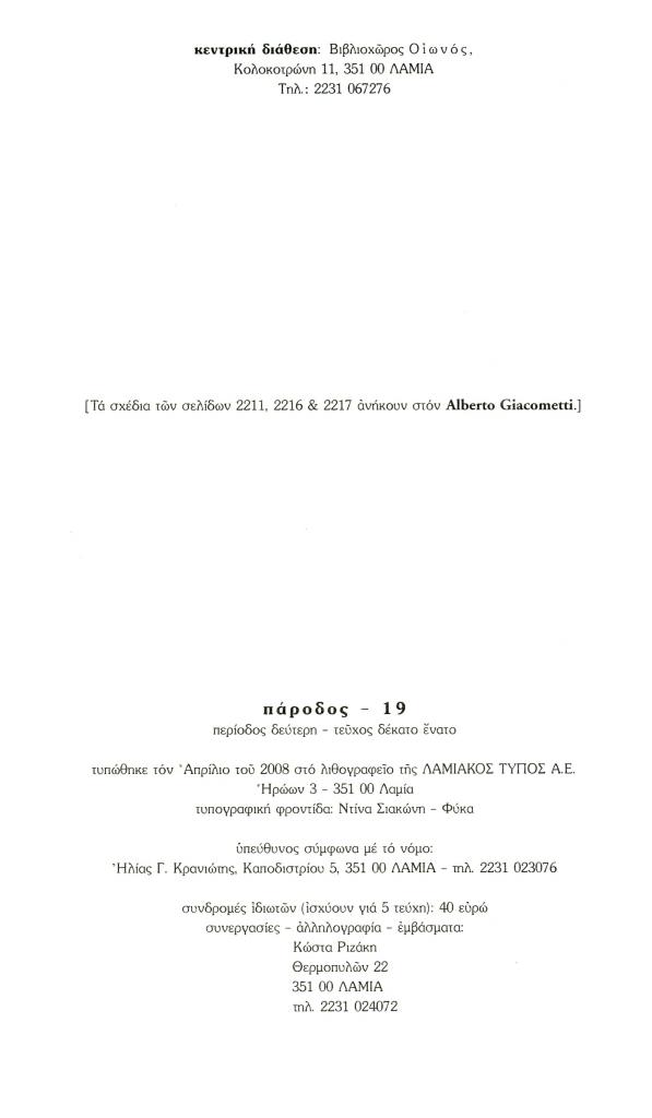 «#», Πάροδος, τχ. 19 (Απρίλιος 2008), σ. (εσώφυλλο)