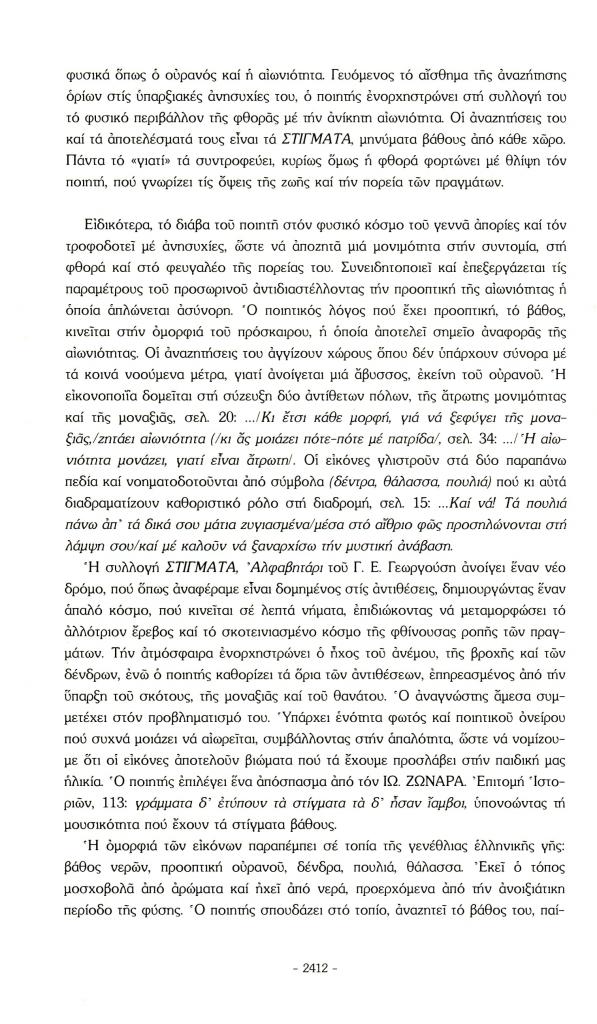 , «Στίγματα βάθους στην ποιητική συλλογή Στίγματα, Αλφαβητάρι του Γ.Ε. Γεωργούση», Πάροδος, τχ. 20 (Ιούνιος 2008), σ. 2411-2415