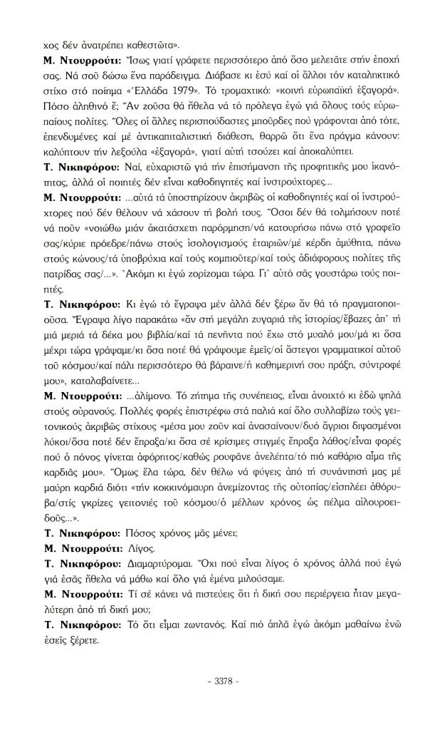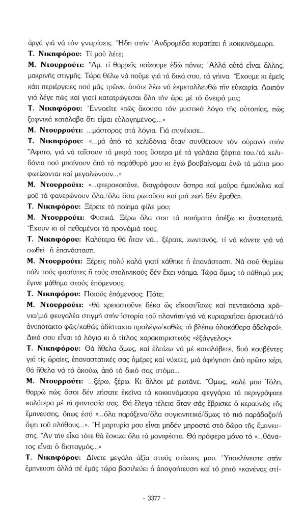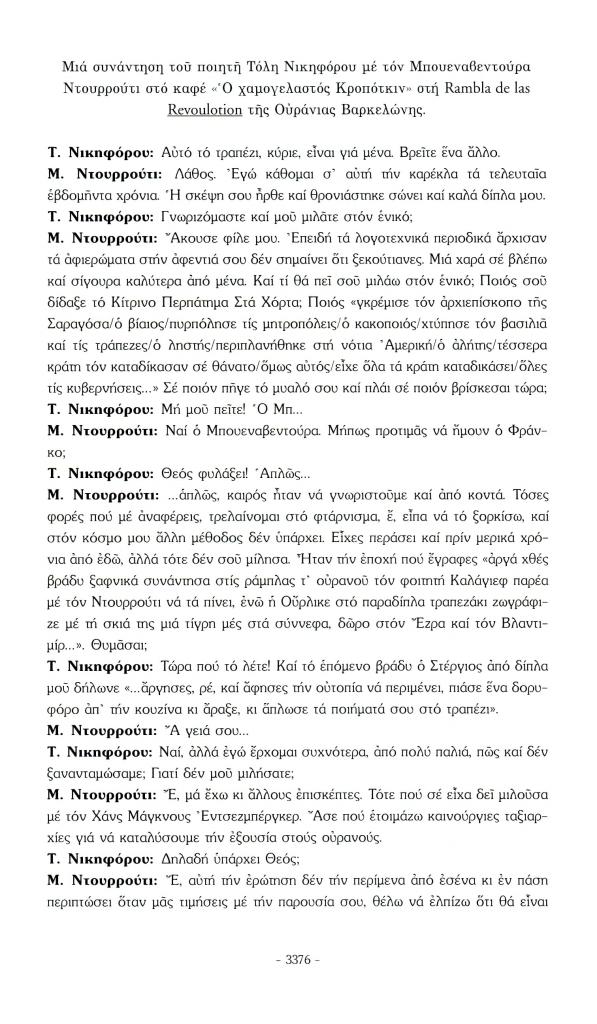 , «Μια συνάντηση του ποιητή Τόλη Νικηφόρου με τον Μπουεναβεντούρα Ντουρρούτι στο καφέ 'Ο χαμογελαστός Κροπότκιν' στη Rambla de las Revolucion της Ουράνιας Βαρκελώνης», Πάροδος, τχ. 29 (Ιούλιος 2009), σ. 3376-3379