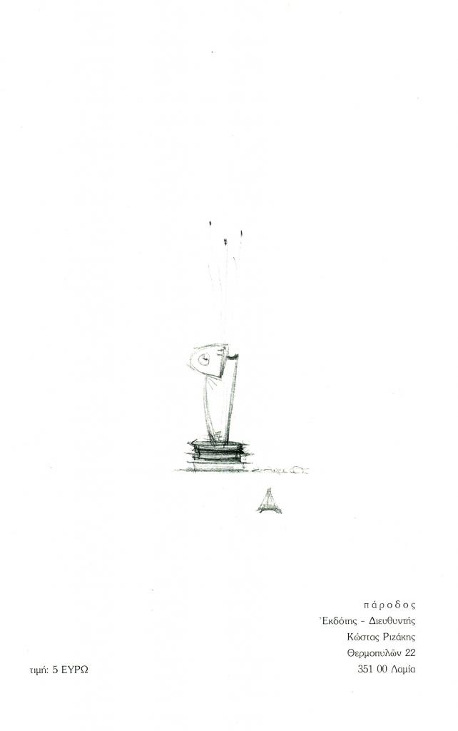 Ρηγανάς Χρήστος, «[Σχέδιο του Χρήστου Ρηγανά]», Πάροδος, τχ. 30 (Αύγουστος 2009), σ. (οπισθόφυλλο)