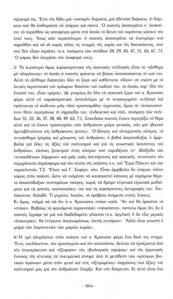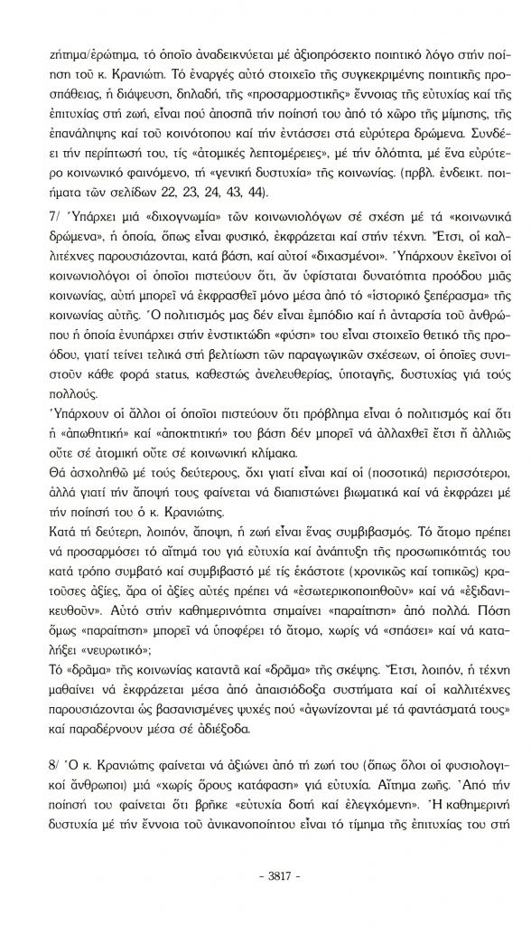 , «Μία προβληματική πάνω στην ποίηση του κ. Ηλία Κρανιώτη»,