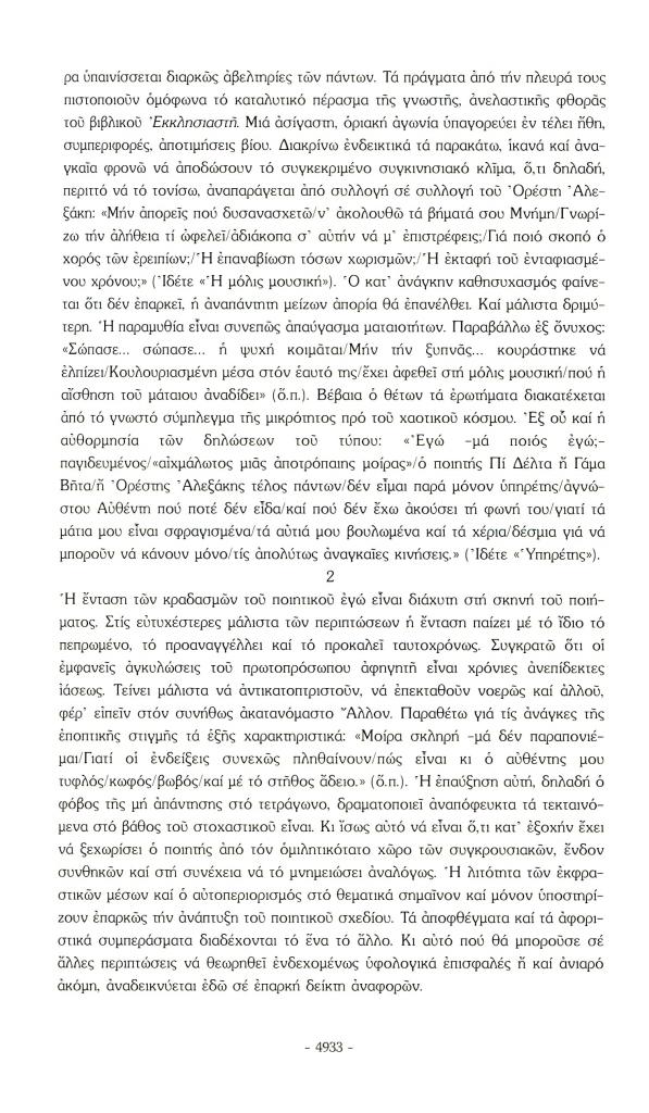 , «Η βάσανος των διερωτήσεων (Υποσελίδιες σημειώσεις στο Άλμπουμ των αποκομμάτων του Ορέστη Αλεξάκη, Εκδόσεις “Γαβριηλίδης”, 2009», Πάροδος, τχ. 41 (Δεκέμβριος 2010), σ. 4932-4934