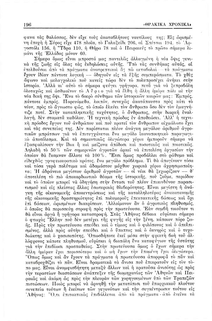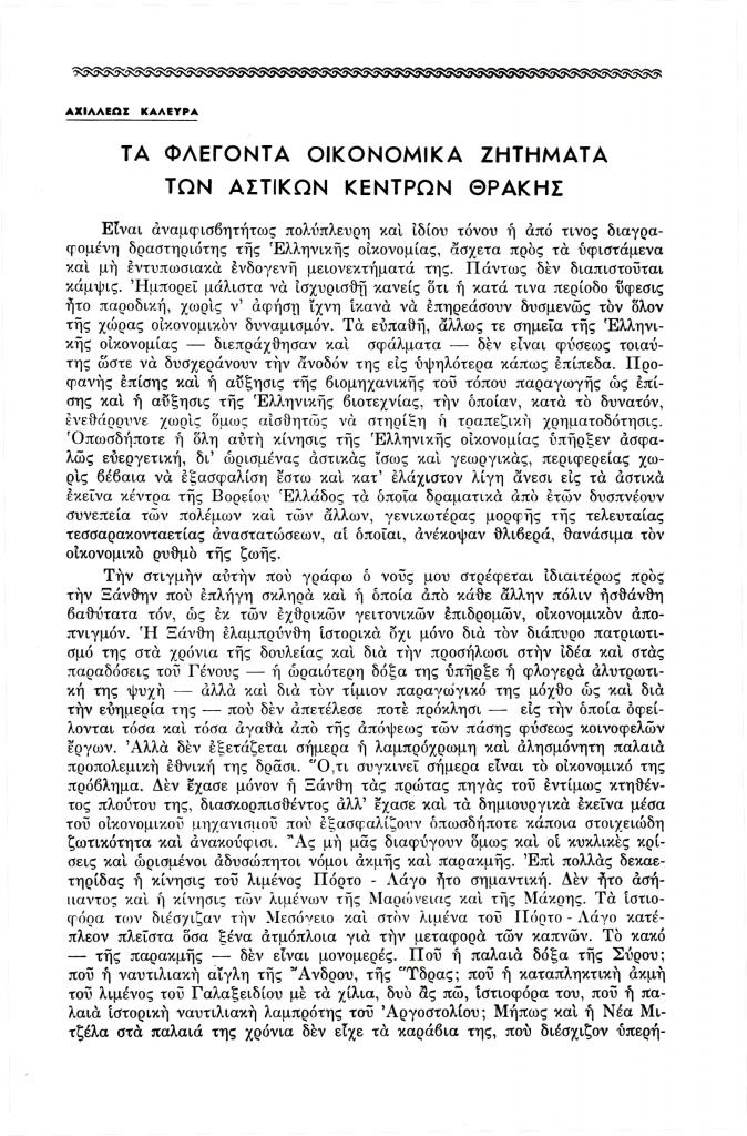 , «Τα φλέγοντα οικονομικά ζητήματα των αστικών κέντρων Θράκης», Θρακικά Χρονικά, τόμ. 1, τχ. 4 (Αύγουστος 1961), σ. 195-197