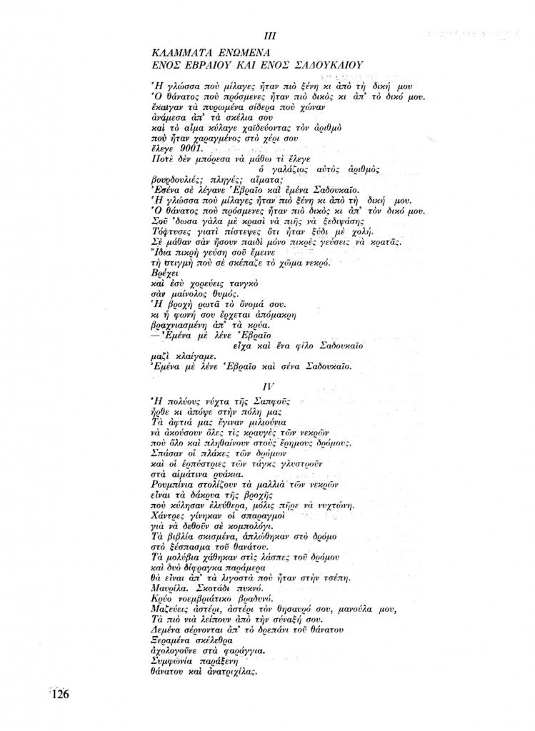 , «Μικρή ποιητική ανθολογία εφτά νέων Ξανθιωτών. Πέντε ποιήματα. IV. [Η πολύους νύχτα της Σαπφούς]», Θρακικά Χρονικά, τχ. 32 ( 1976), σ. 126