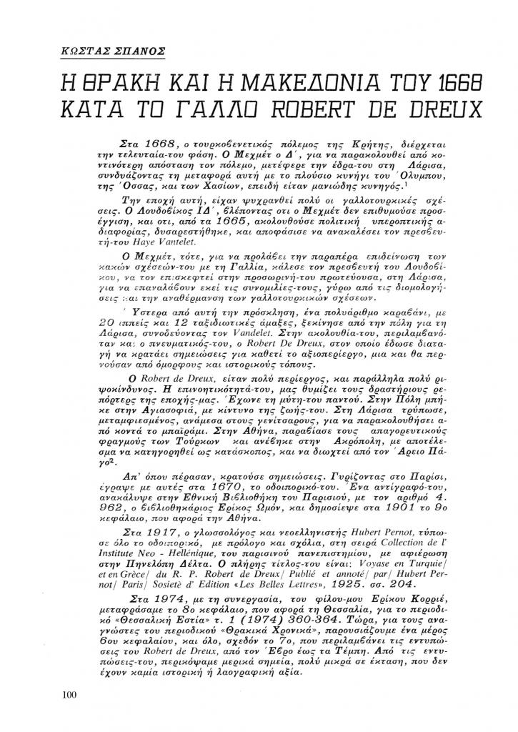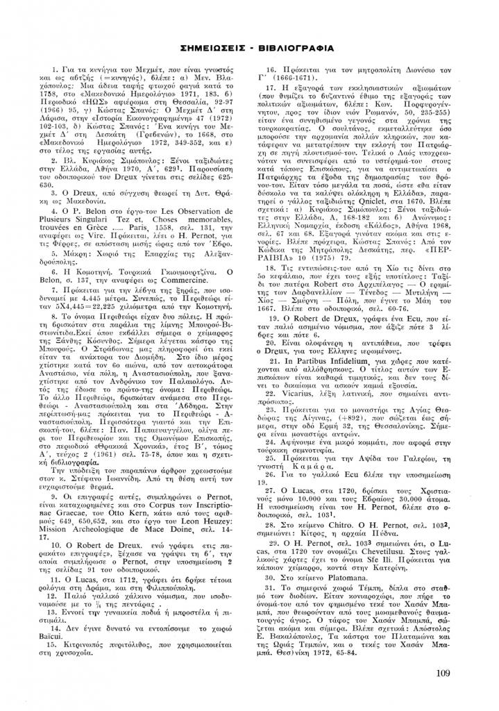 , «Η Θράκη και η Μακεδονία του 1668 κατά το Γάλλο Robert de dreux. [Εισαγωγή-σχόλια]», Θρακικά Χρονικά, τχ. 34 ( 1978), σ. 100, 109