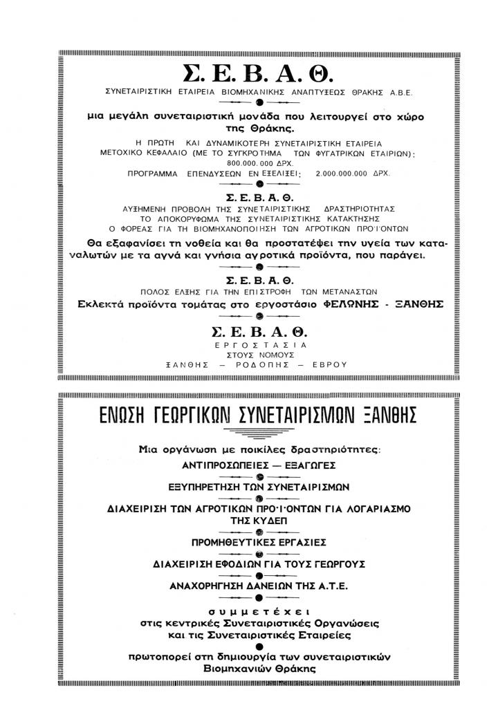 «Σ.Ε.Β.Α.Θ. – Συνεταιριστική Εταιρεία Βιομηχανικής Αναπτύξεως Θράκης Α.Β.Ε.», Θρακικά Χρονικά, τχ. 34 ( 1978), σ. 132