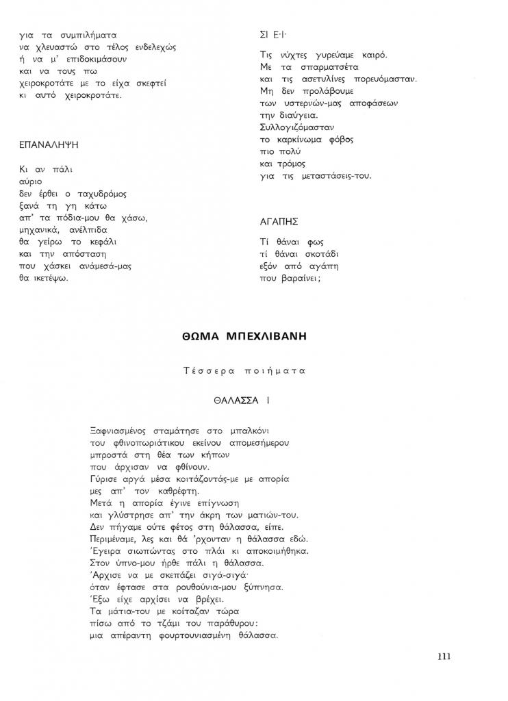 Ζούμπος Νίκος, «Ποιήματα. Επανάληψη», Θρακικά Χρονικά, τχ. 35 ( 1979), σ. 111