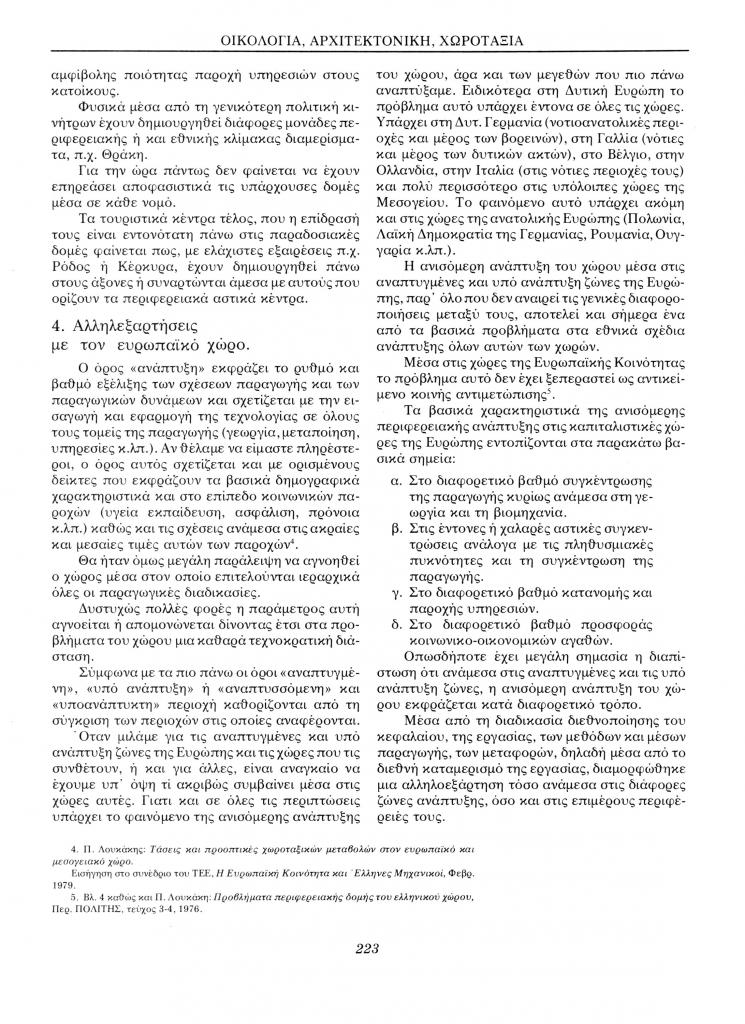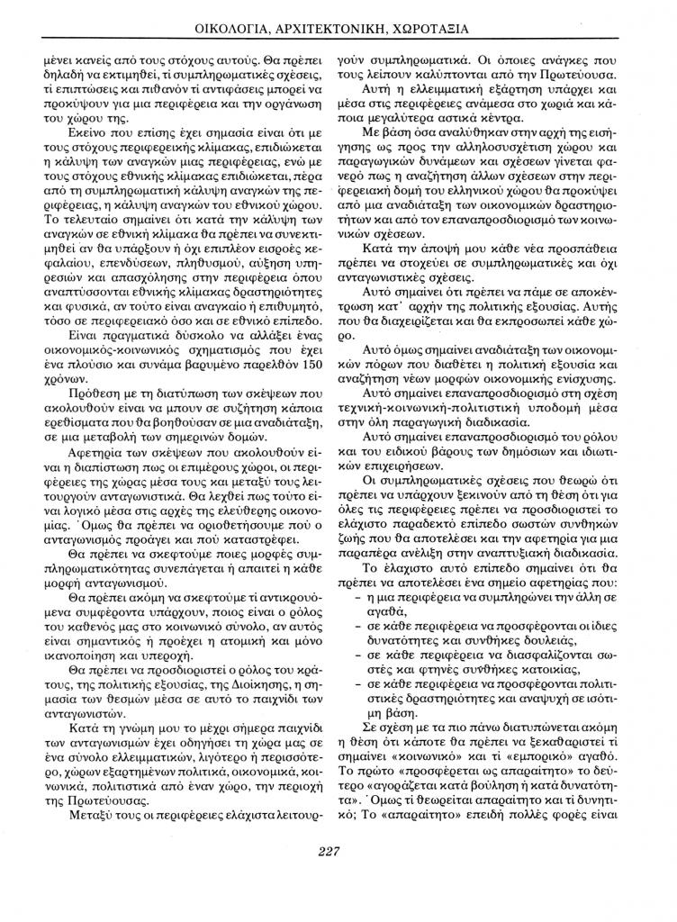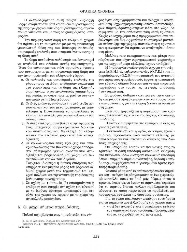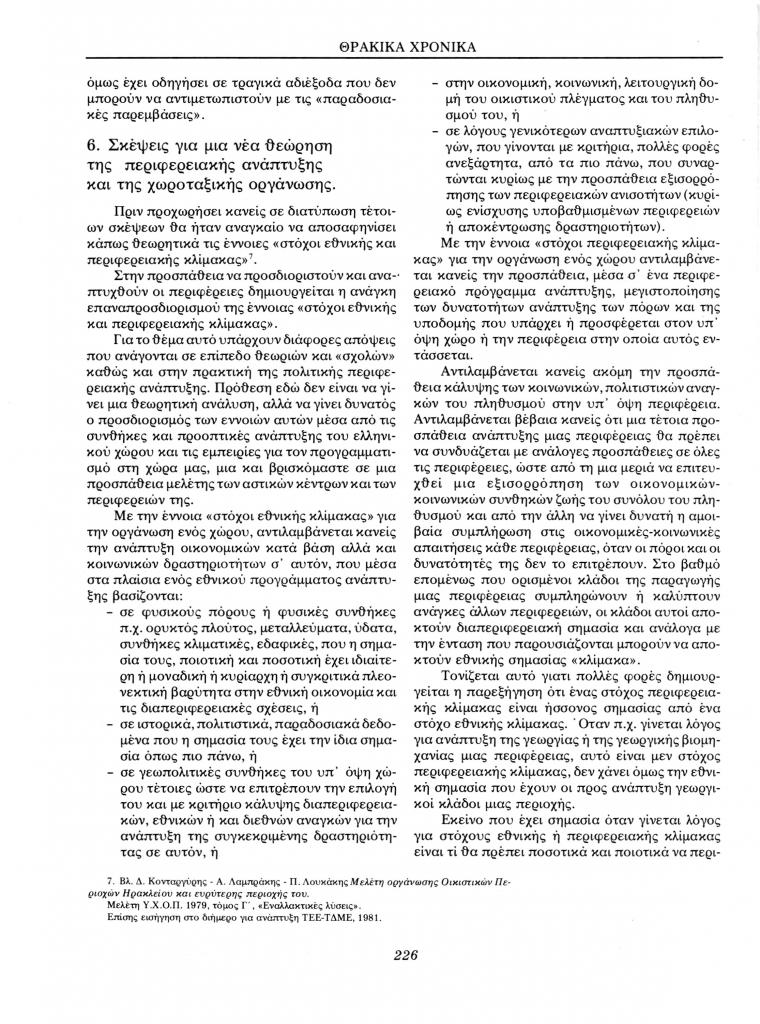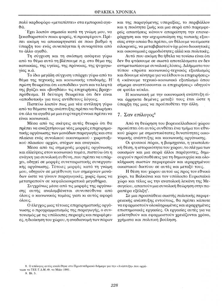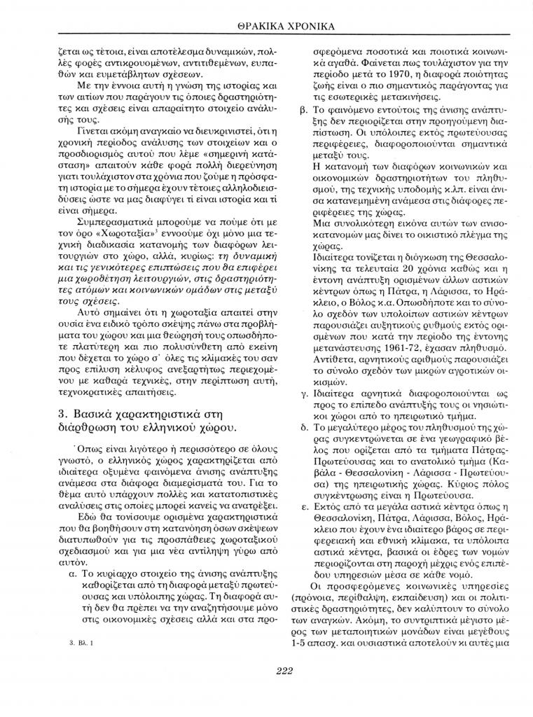 , «Χωροταξία και περιφερειακή ανάπτυξη. Σκέψεις γύρω από το ελληνικό πρόβλημα», Θρακικά Χρονικά, τχ. 38 ( 1983), σ. 220-228