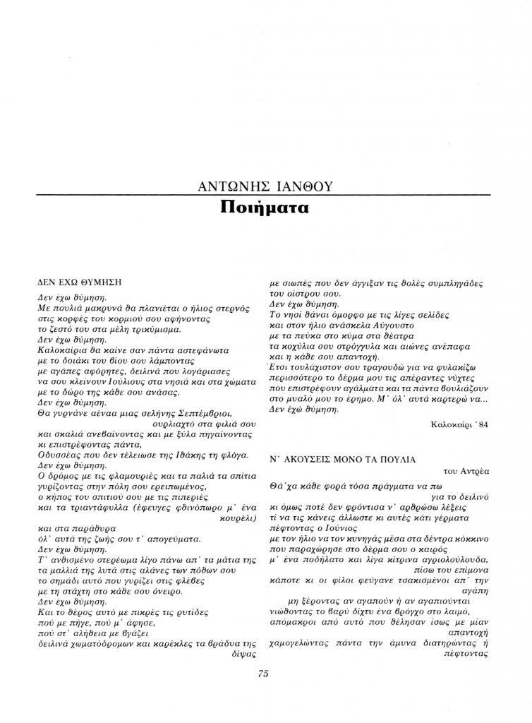 , «Ποιήματα. Ν' ακούσεις μόνο τα πουλιά»,