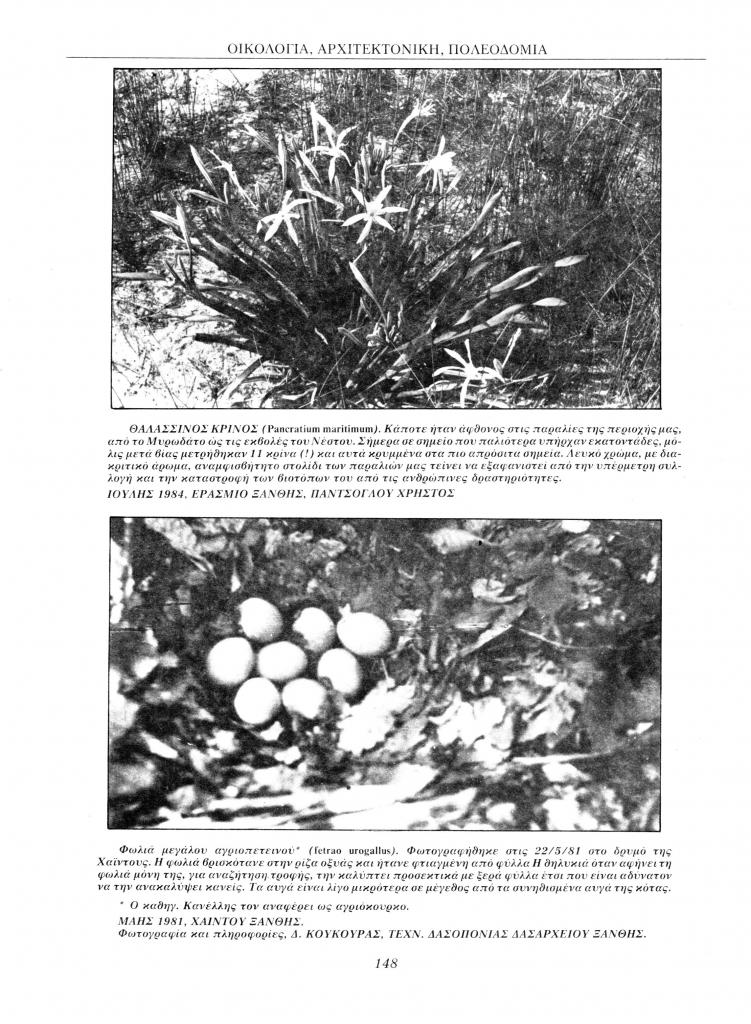 Κούκουρας Δ., «Φωλιά μεγάλου αγριοπετεινού (fetrao urogallus)», Θρακικά Χρονικά, τχ. 39 ( 1984), σ. 148
