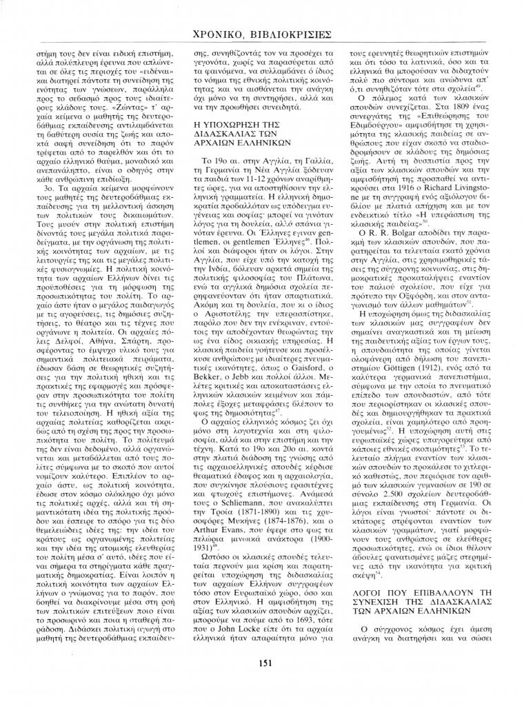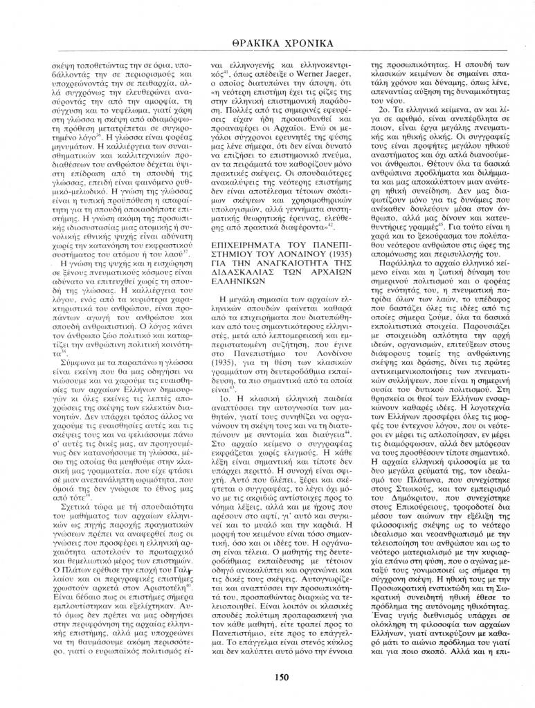 , «Η αναγκαιότητα της διδασκαλίας των αρχαίων κλασικών μας κειμένων από το πρωτότυπο», Θρακικά Χρονικά, τχ. 42 ( 1988), σ. 147-163