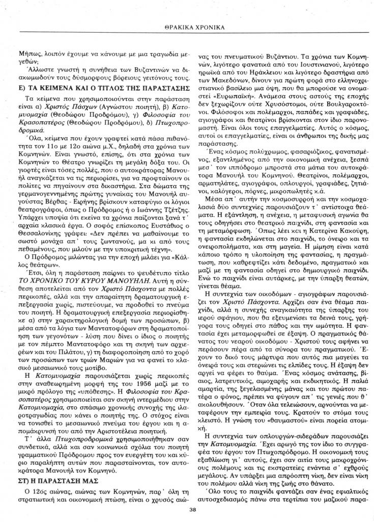 , «Το Χρονικό του κυρ Μανουήλη. Μια Δοκιμή»,