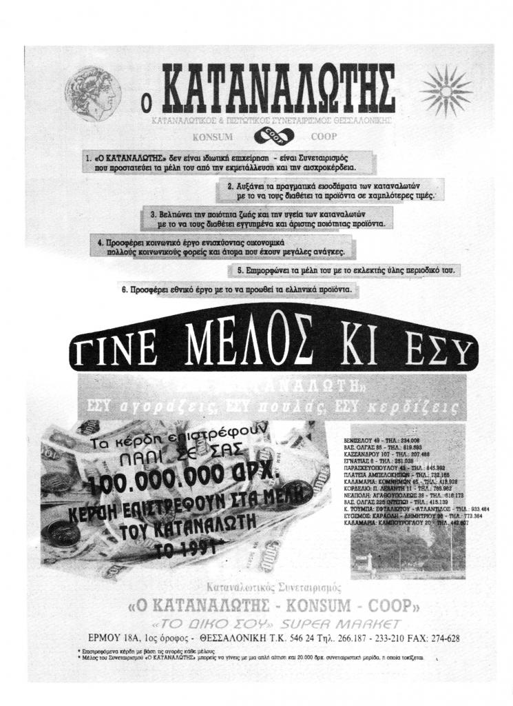 «Ο Καταναλωτής. Καταναλωτικός & Πιστωτικός Συνεταιρισμός Θεσσαλονίκης», Θρακικά Χρονικά, τχ. 46 ( 1992), σ. 120