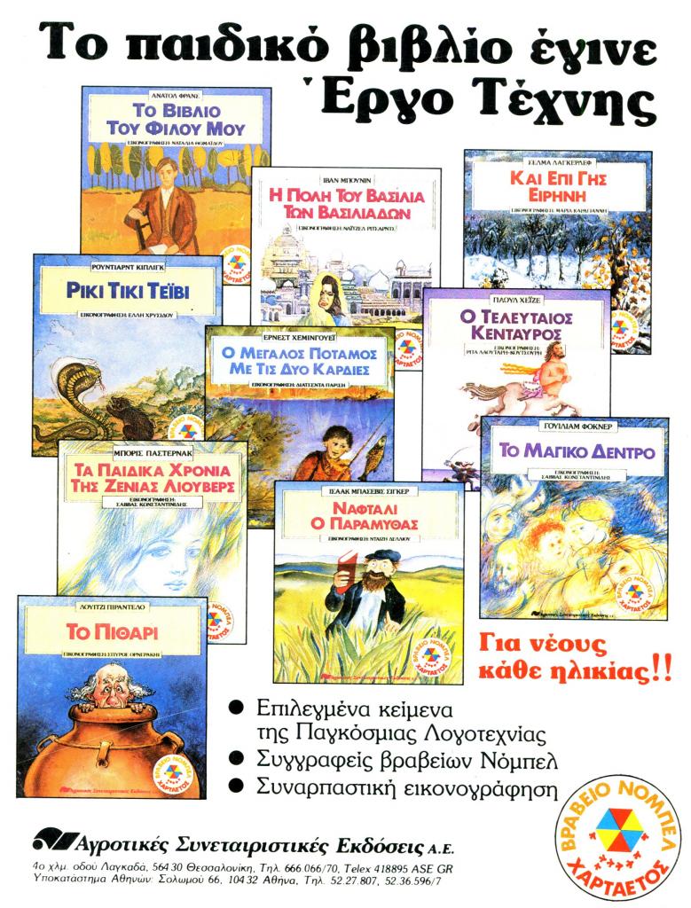 «Το παιδικό βιβλίο έγινε έργο τέχνης», Το Τραμ, τχ. 3 (Οκτώβριος 1987), σ. (οπισθόφυλλο)
