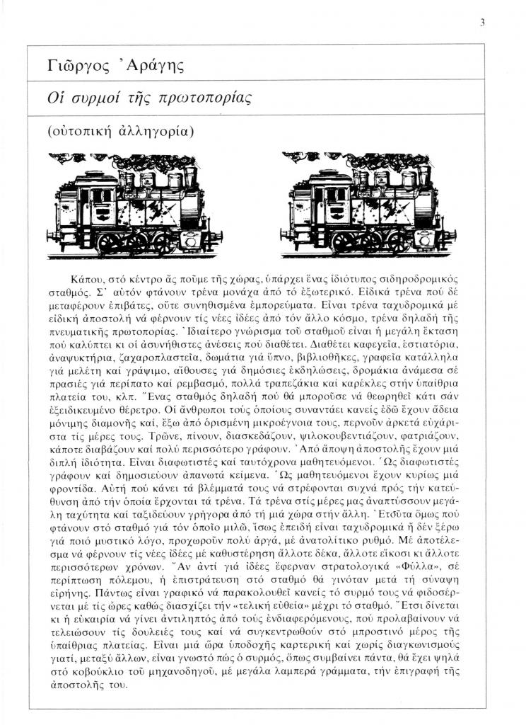 , «Οι συρμοί της πρωτοπορίας (ουτοπική αλληγορία)»,
