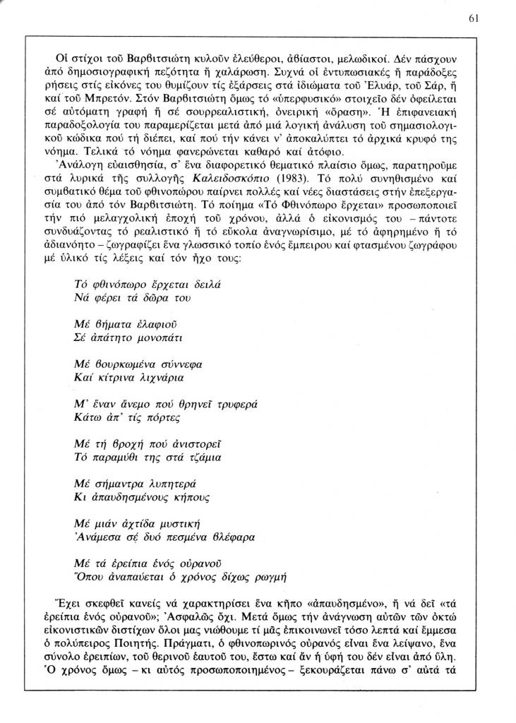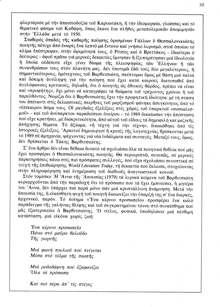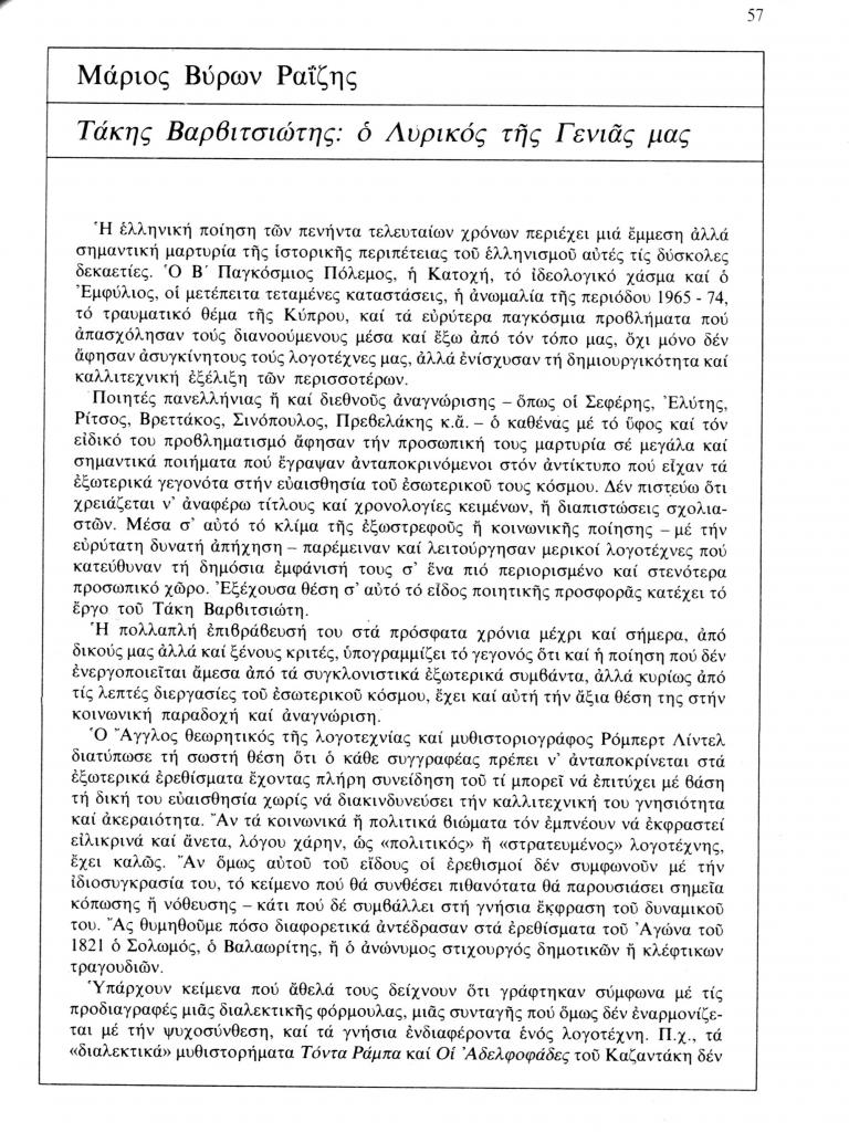 , «Τάκης Βαρβιτσιώτης: ο λυρικός της γενιάς μας»,