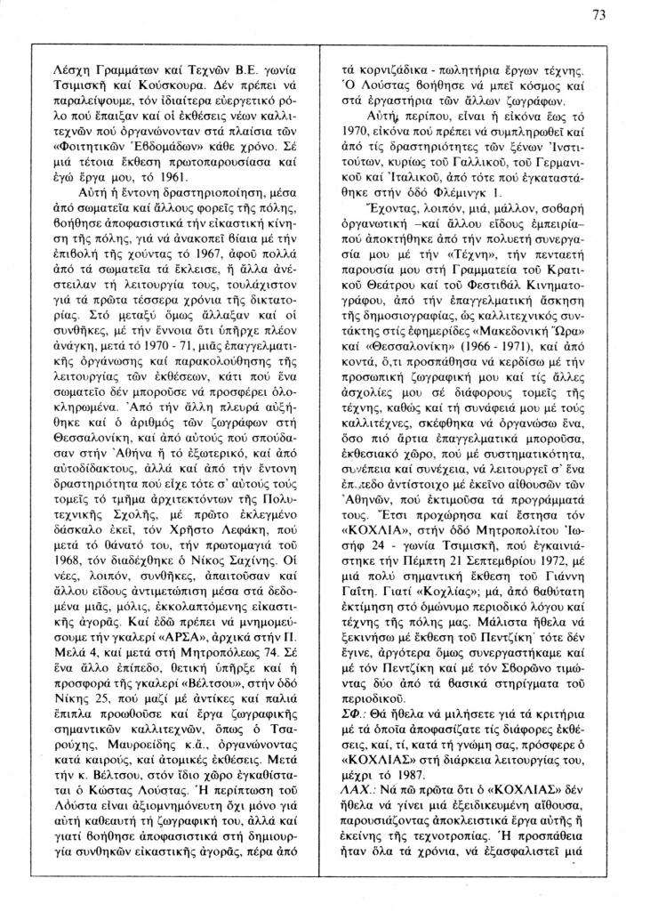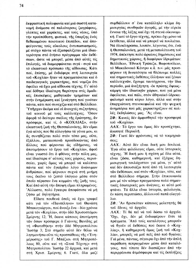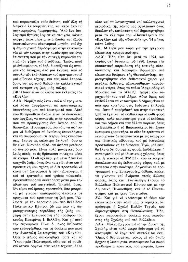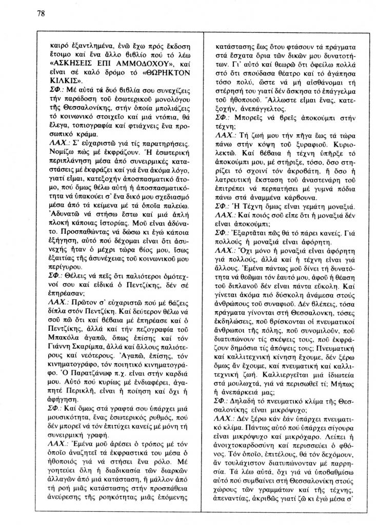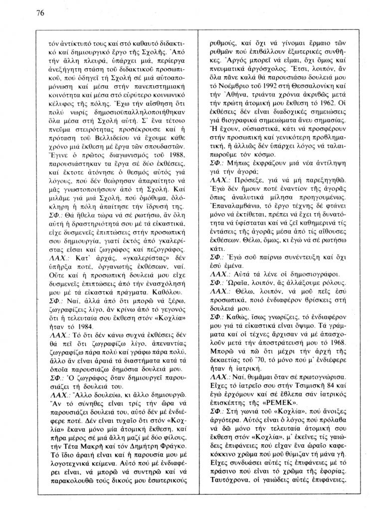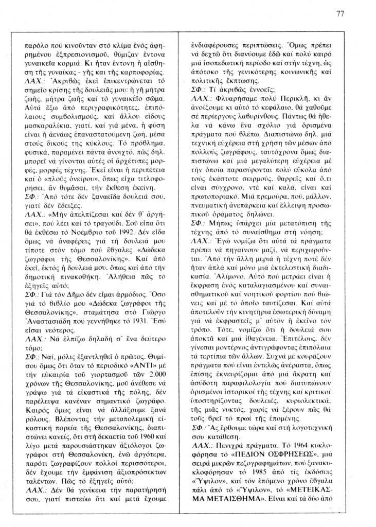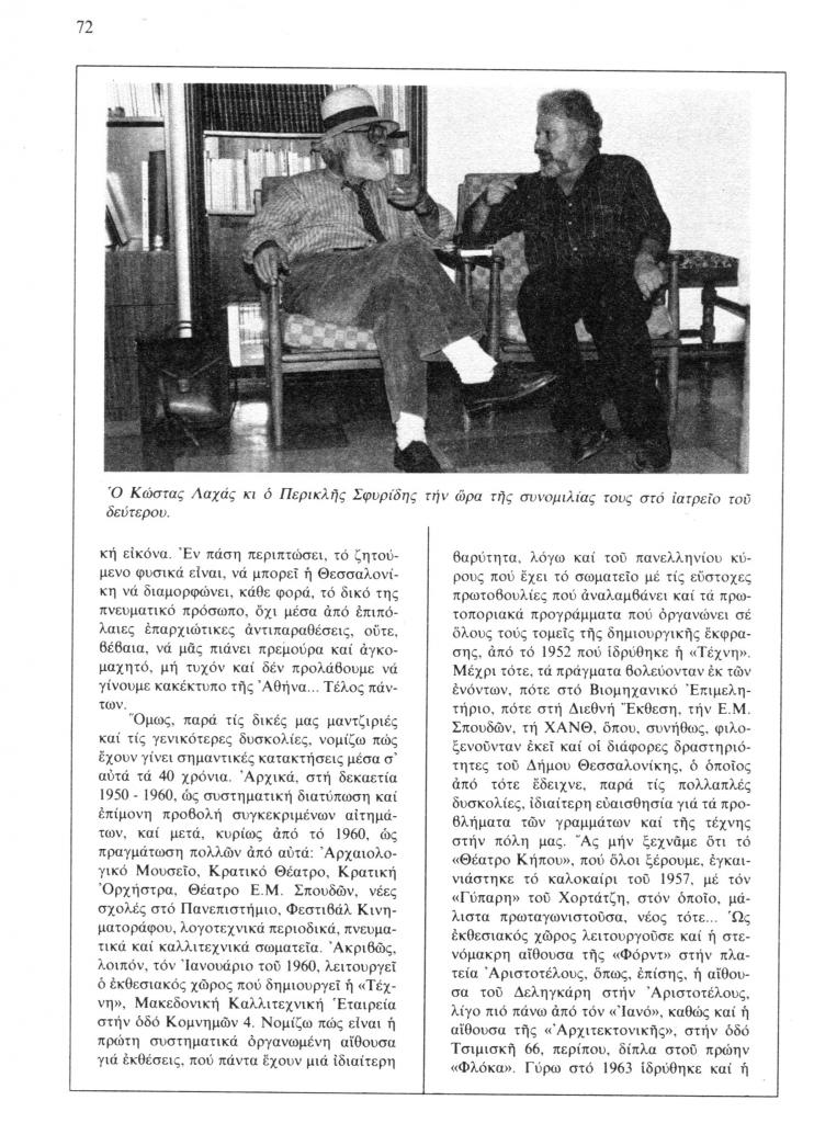, «Ο Κώστας Λαχάς κι ο Περικλής Σφυρίδης την ώρα της συνομιλίας τους στο ιατρείο του δεύτερου», Το Τραμ, τχ. 16 (Μάιος 1991), σ. 72-78