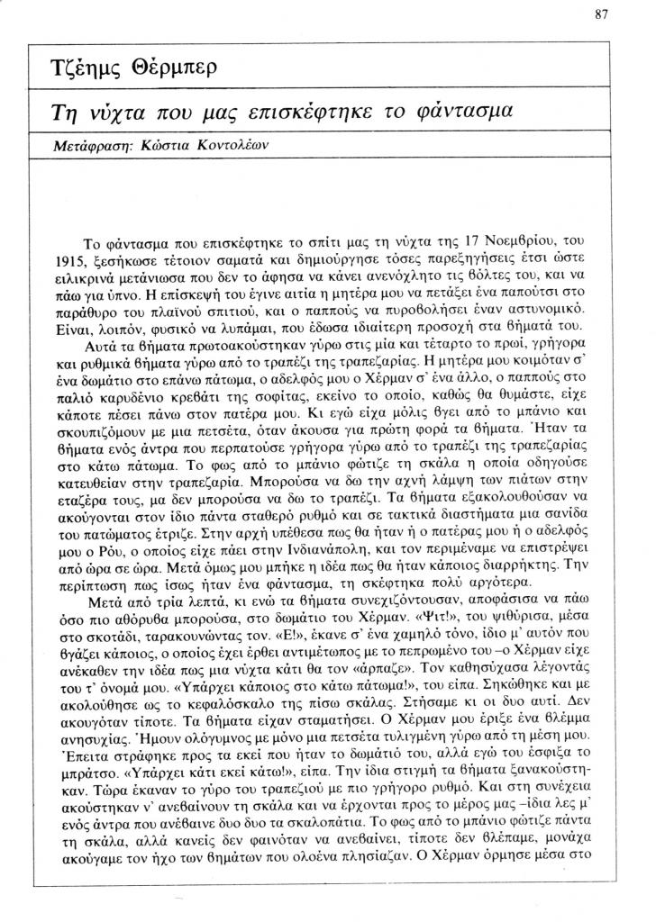 , «Τη νύχτα που μας επισκέφτηκε το φάντασμα»,