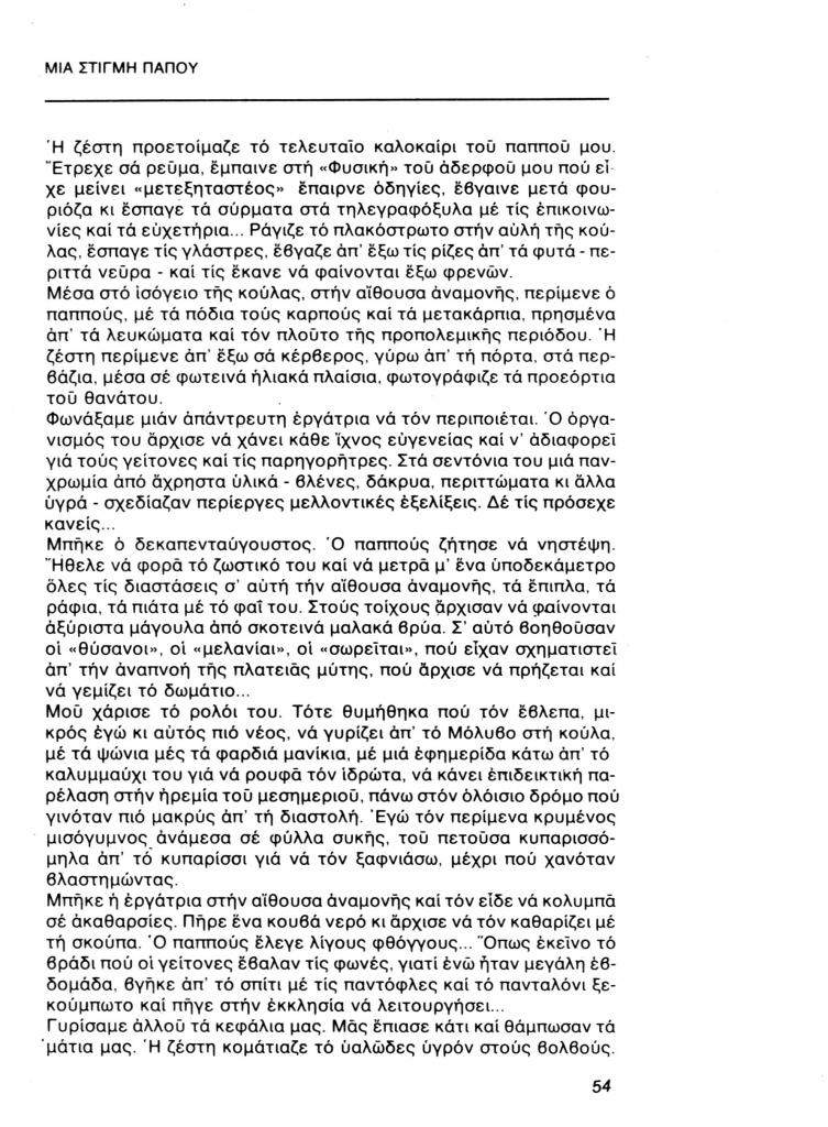 Θεοφίλου Νάσος, «Δύο διηγήματα. Μια στιγμή παπού», Τραμ, τχ. 1 (Ιούλης 1976), σ. 54-56