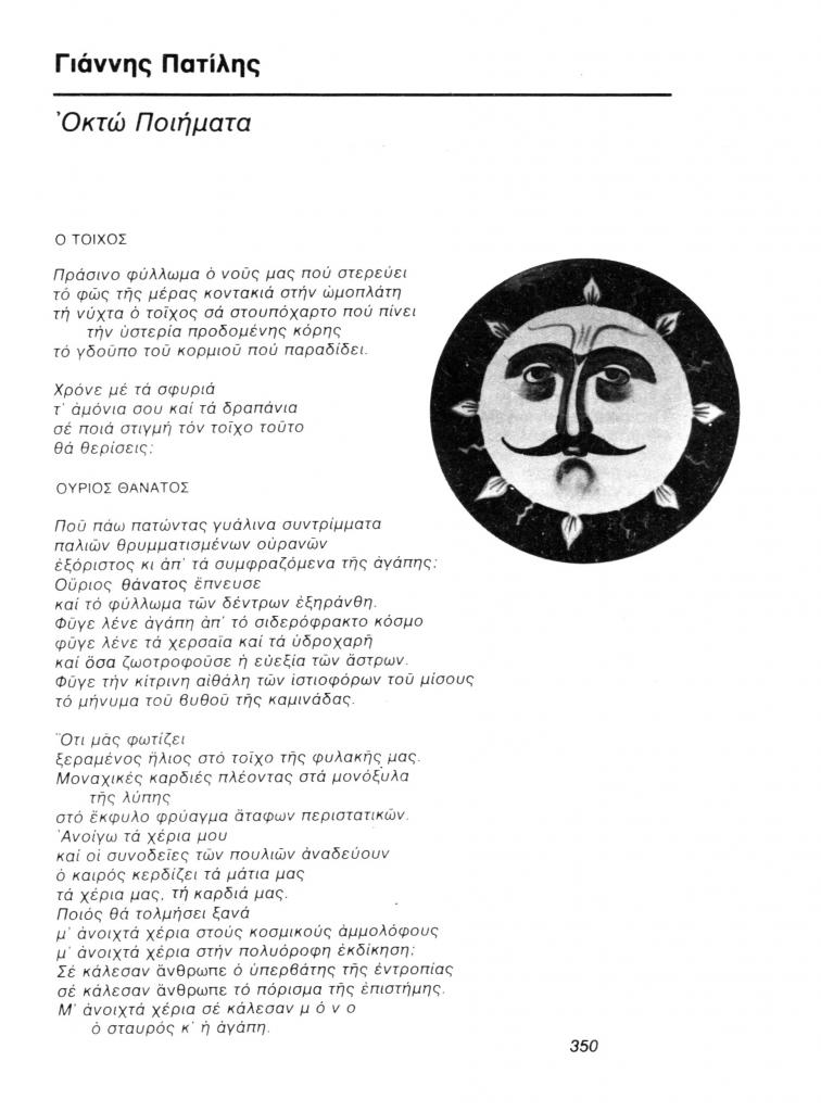 Πατίλης Γιάννης, «Οκτώ ποιήματα. Ο τοίχος», Τραμ, τχ. 5 (Μάης 1977), σ. 350