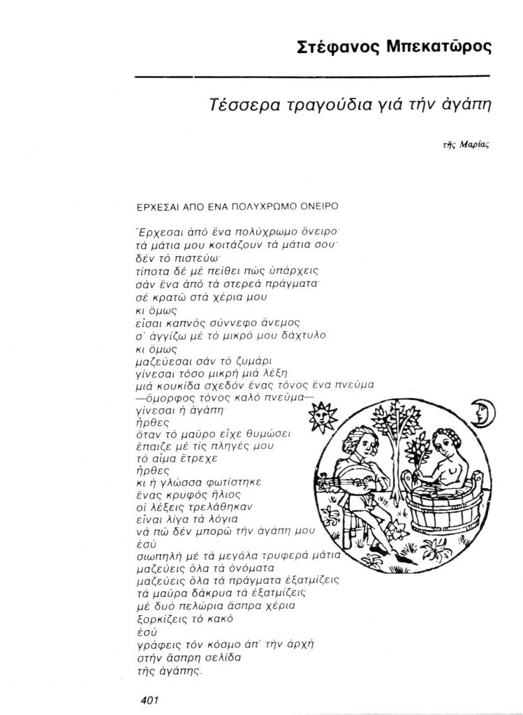 , «Τέσσερα τραγούδια για την αγάπη. Έρχεσαι από ένα πολύχρωμο όνειρο»,