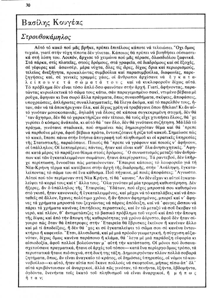 Κουγέας Βασίλης, «Στρουθοκάμηλος», Τραμ, τχ. 7 (Γενάρης 1978), σ. 30
