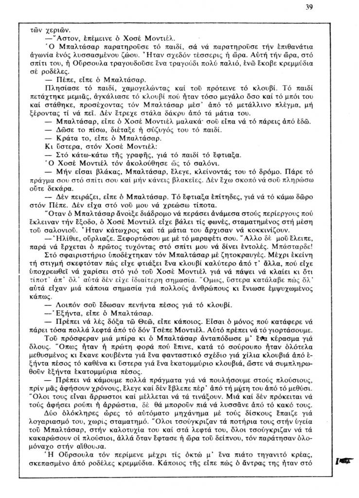 Márquez Gabriel García, «Το απόγεμα του Μπαλτάσαρ», Τραμ, τχ. 7 (Γενάρης 1978), σ. 35-40