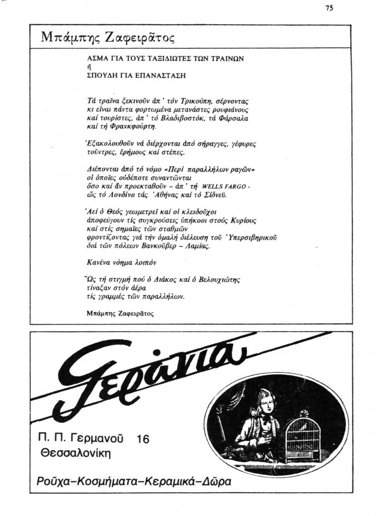 , «Άσμα για τους ταξιδιώτες των τραίνων ή Σπουδή για επανάσταση»,