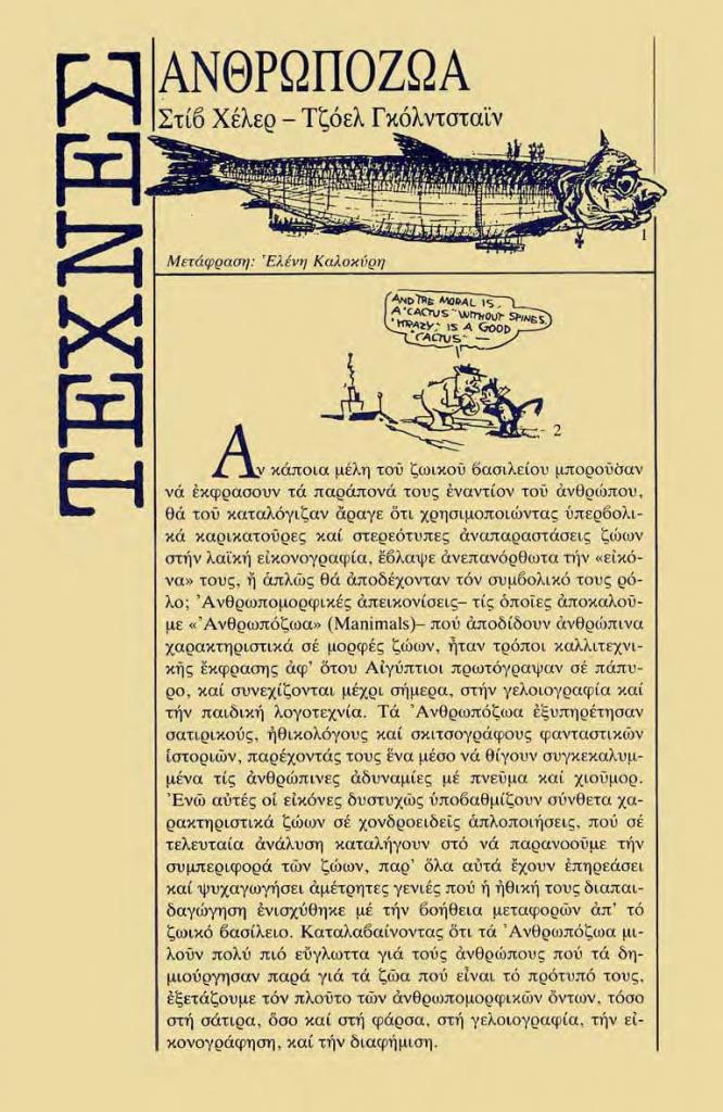 Heller Steve,Goldstein Joel, «Τέχνες. Ανθρωπόζωα», Χάρτης, τχ. 1 (Ιούλιος 1982), σ. 54-60