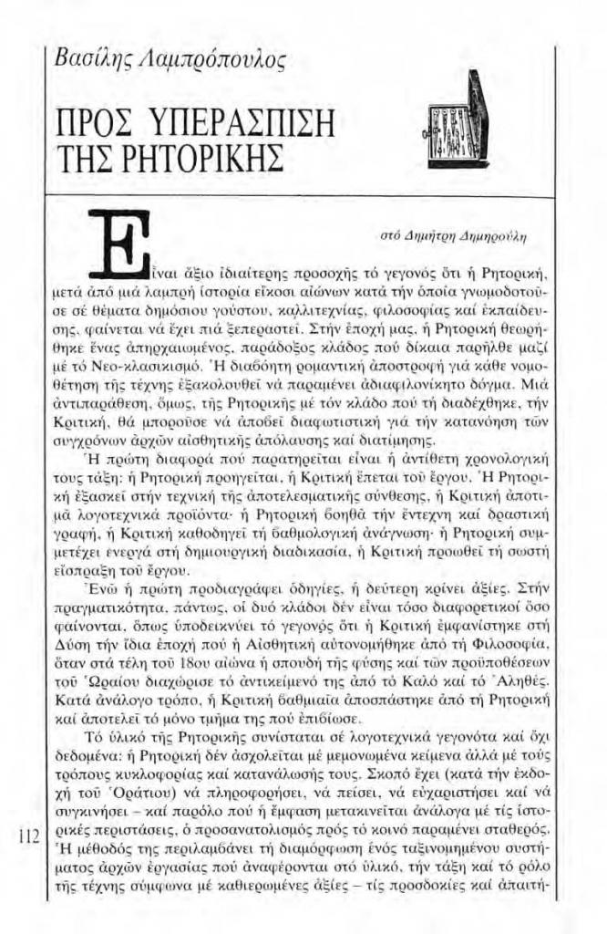 , «Τέχνες. Προς υπεράσπιση της ρητορικής»,