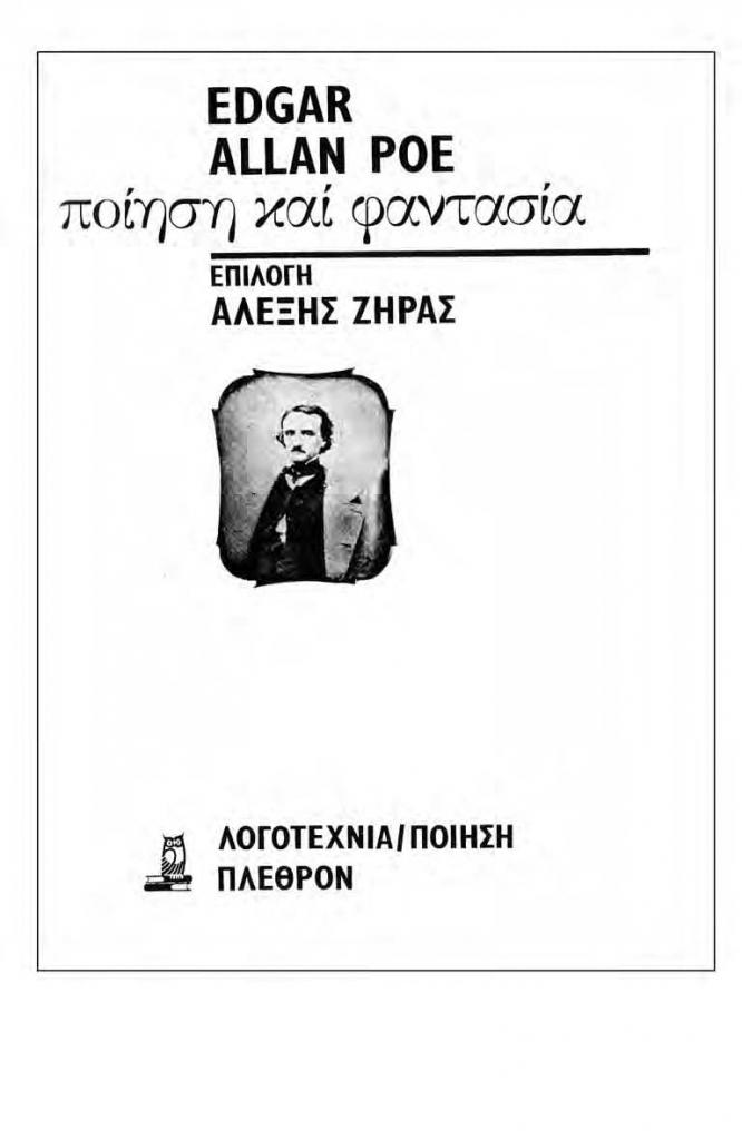 «[Edgar Allan Poe, Ποίηση και φαντασία. Επιλογή Αλέξης Ζήρας. Λογοτεχνία/ Ποίηση Πλέθρον]», Χάρτης, τχ. 2 (Σεπτέμβριος 1982), σ. 155