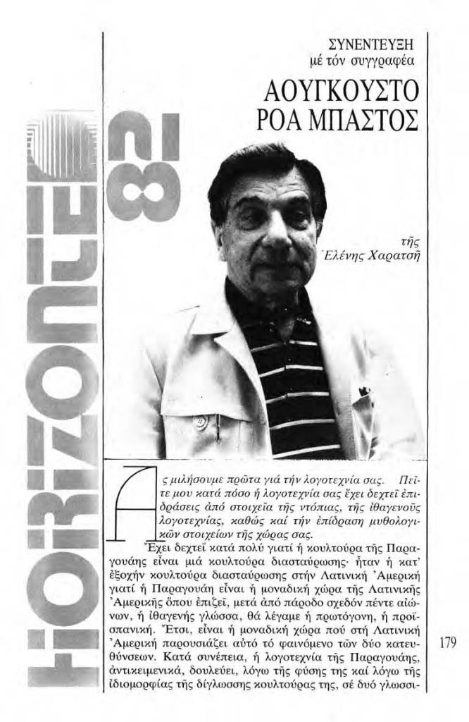 «[Αουγκούστο Ρόα Μπάστος]», Χάρτης, τχ. 2 (Σεπτέμβριος 1982), σ. 179