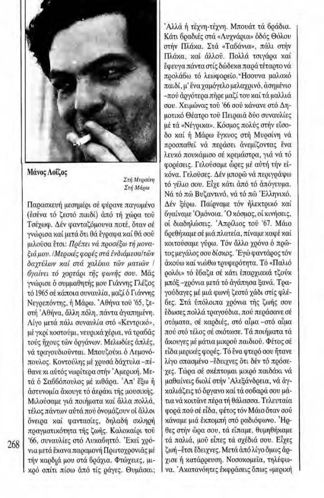 «[Μάνος Λοΐζος]», Χάρτης, τχ. 3 (Νοέμβριος 1982), σ. 268